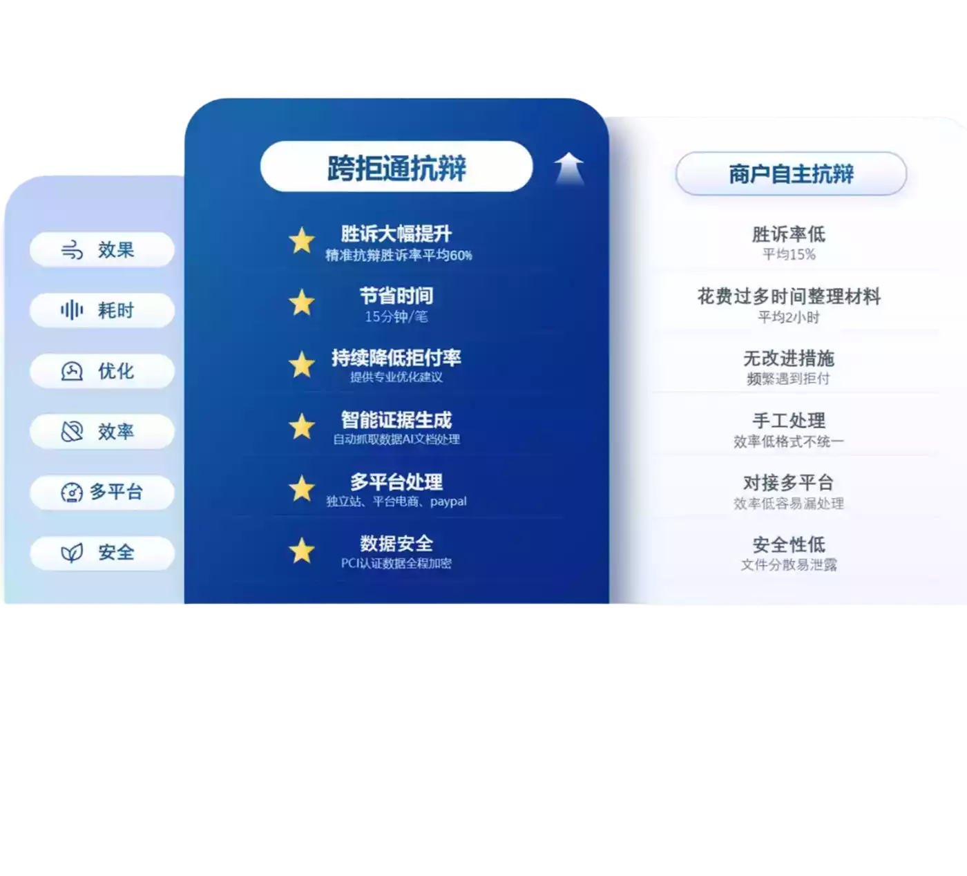 我们通过拒付预警、智能抗辩、拒付包赔及支付风控方案,
