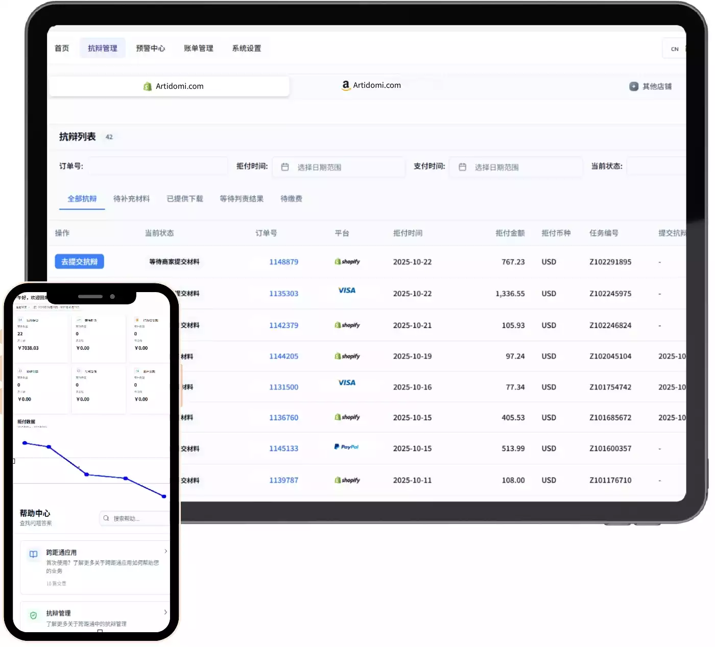 定期输出拒付趋势洞察、抗辩成功率分析及高风险商品报告